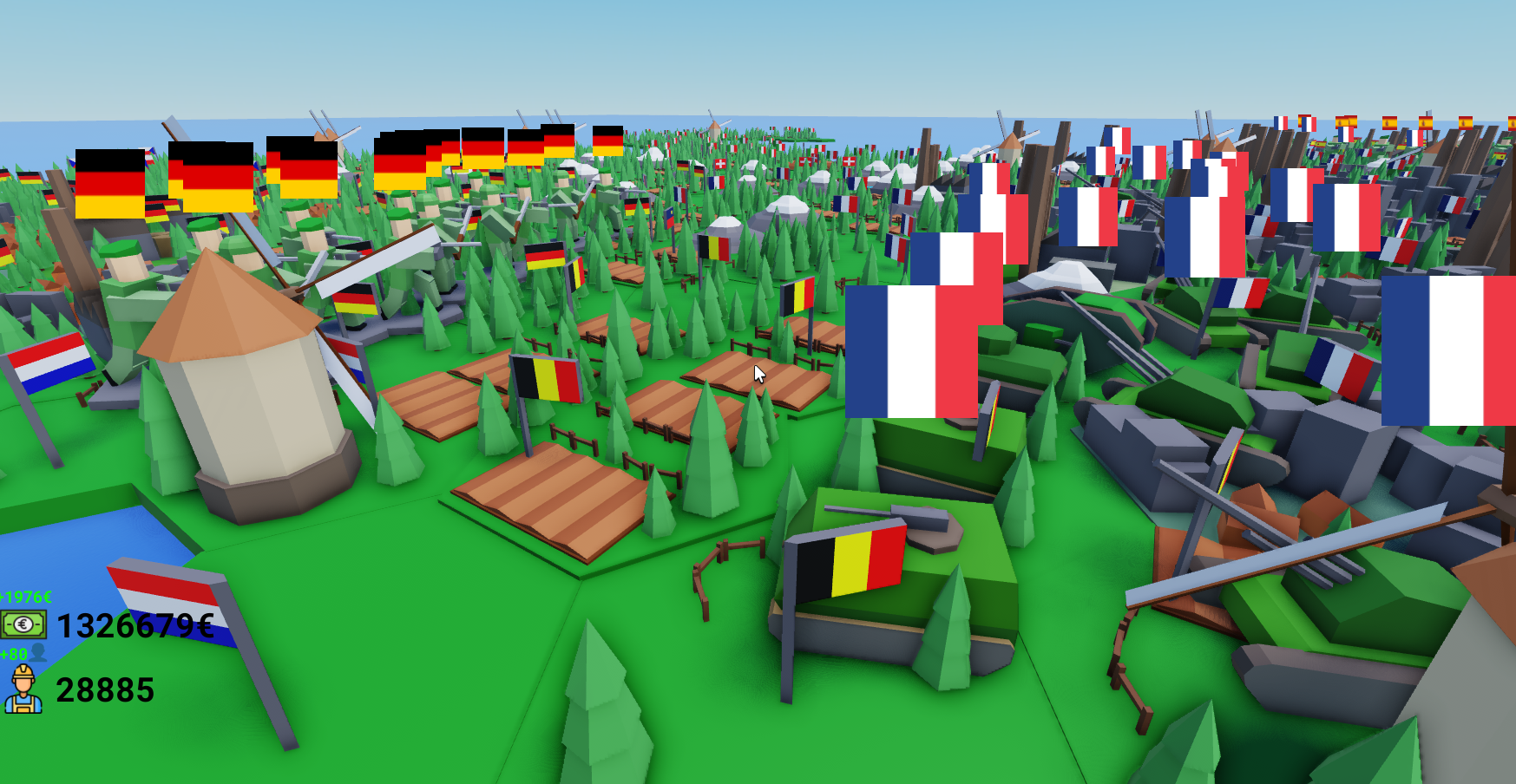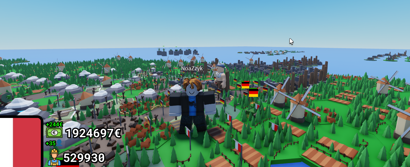 Les autres aspects de la gestion d’un pays — comme la politique, la faim ou la satisfaction — étant intellectuellement trop exigeants pour la majorité des joueurs Roblox, j’ai préféré aller à l’essentiel et simplifier au maximum ces éléments.
